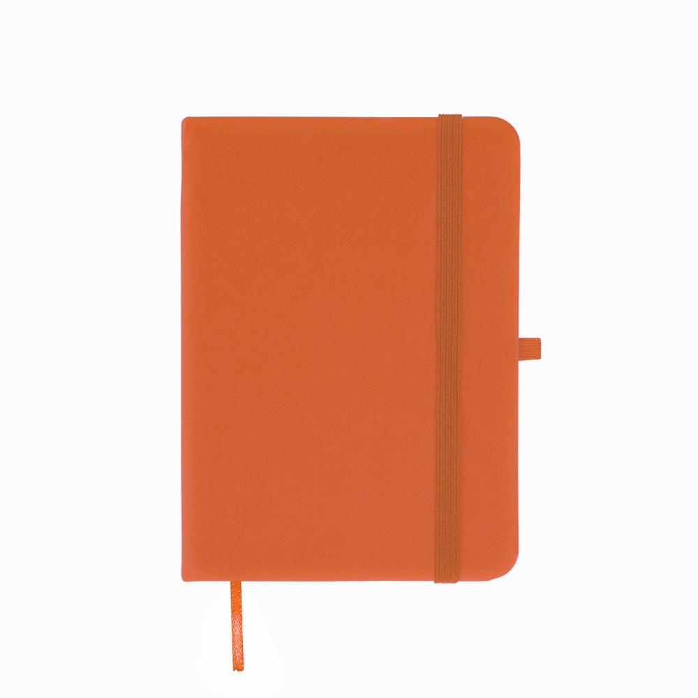 Descrição: Caderneta emborrachada com elástico para lacre, marcador de página em cetim e porta caneta, contém aproximadamente 84 folhas marfim sem pauta.