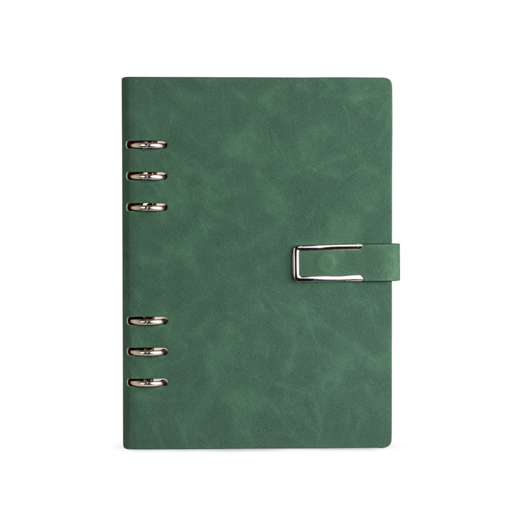 Descrição: Organize todas as anotações de forma prática com o nosso caderno fichário em PU. Com um design super elegante, ele tem capa dura no formato A5 e um fechamento de fivela imantado que protege as 119 folhas em papel marfim. Os seis anéis permitem retirar e reorganizar as folhas sempre que precisarem, deixando tudo do seu jeito. E para completar, a primeira folha traz um espaço especial para dados pessoais. Esse caderno fichário é a escolha perfeita para manter tudo organizado e com muita sofisticação.