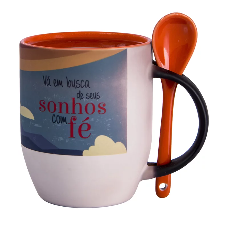 home / produtos / Canecas e Xícaras / Cerâmica / Caneca Mágica de Cerâmica Com Colher Para Sublimação Laranja 325ml - C2SKU30376