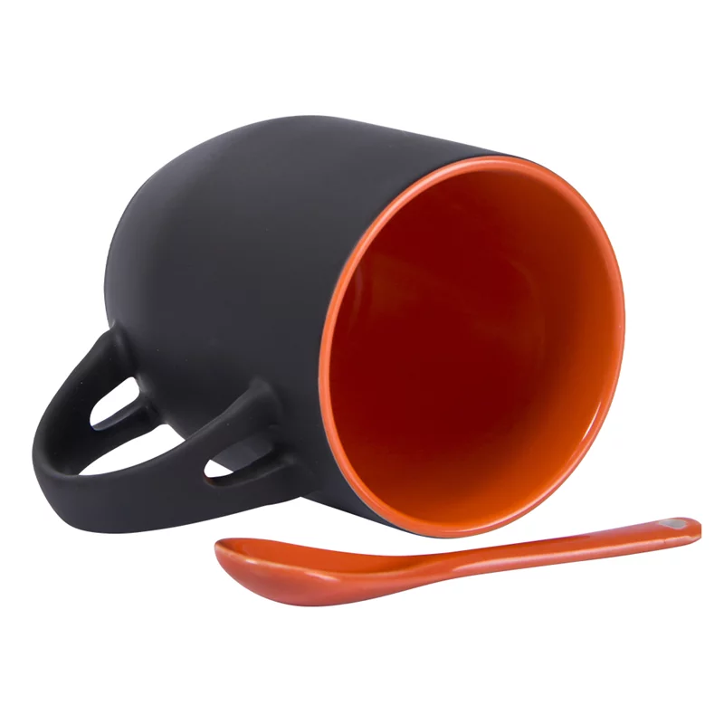 CANECA MÁGICA PARA SUBLIMAÇÃO COM INTERIOR E COLHER LARANJA