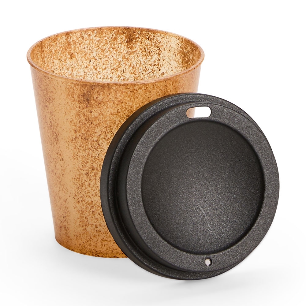 Descrição: Copo feito em fibra de coco com capacidade de até 350ml. Possui tampa plástica com bocal.