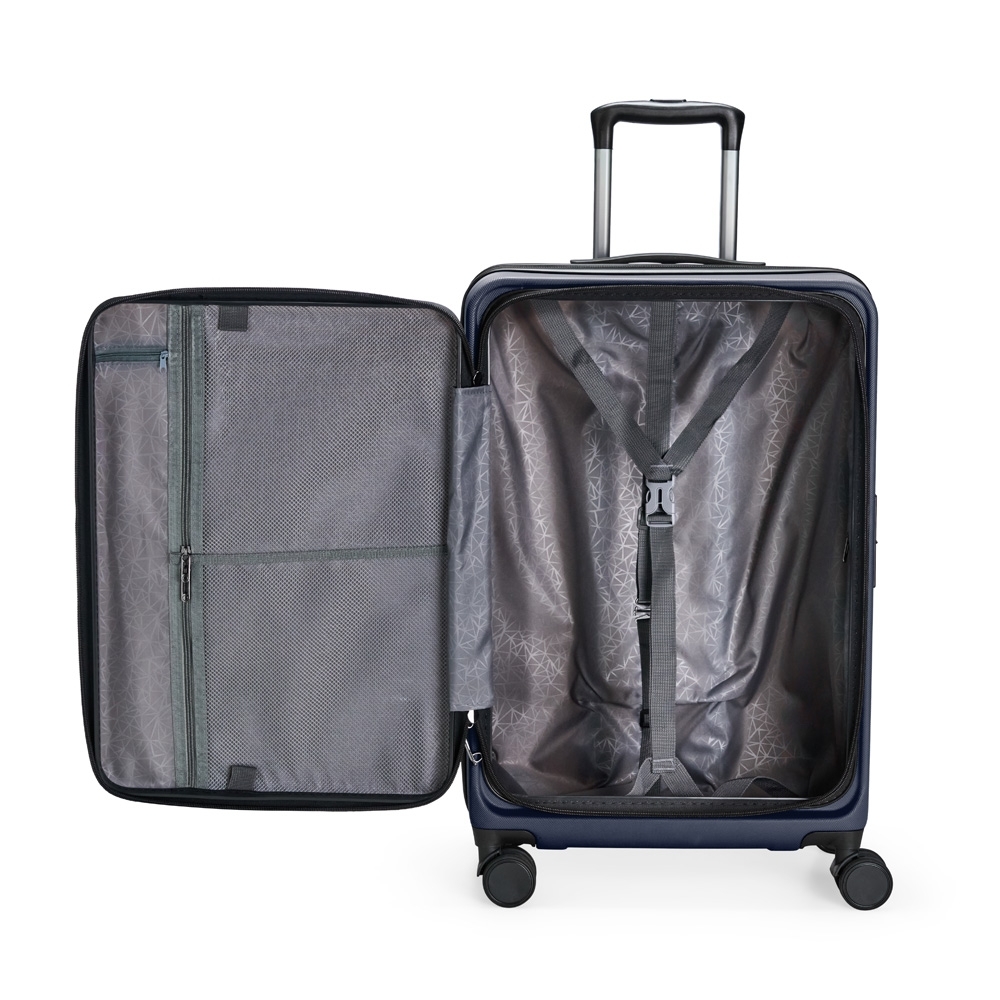 Descrição: Mala de 49 litros, resistente e funcional! Produzida em plástico ABS, conta com cadeado numérico TSA embutido para mais segurança. Seu design inteligente traz abertura frontal com bolso para notebook de até 15.6, além de divisórias internas com zíperes e cinta compressora para roupas. Precisa de mais espaço? O zíper externo expansível se encarrega de ampliar a capacidade da mala. Para facilitar o transporte, possui puxador retrátil de 3 estágios, duas alças de mão, apoios e ganchos laterais e rodinhas 360º, proporcionando mobilidade total. Acompanha plaquinha metálica grafite personalizável.