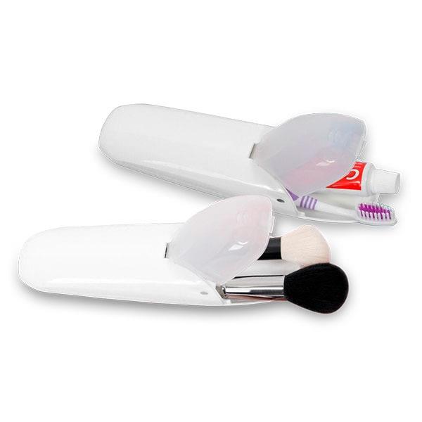 Porta utensílios - Material: Plástico PP Medidas: 6 cm de largura, 4,5 cm de altura e 21,5 cm de comprimento. Peso: 68 gramas. Opção para personalização em tampografia, serigrafia e transfer. Produto indicado para armazenamento e transporte de escova de dentes, pasta dental, píncel para maquiagem, ferramentas e o que a criatividade permitir.