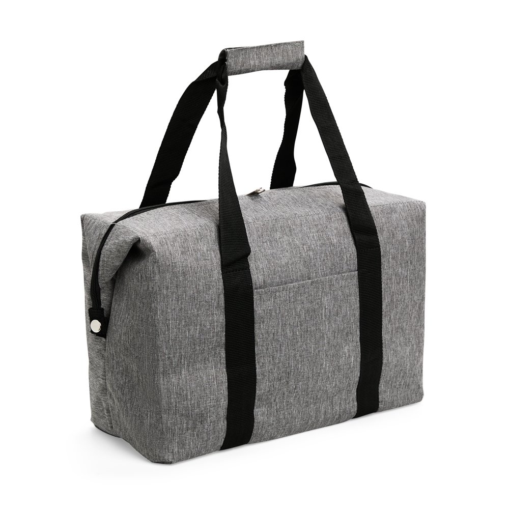 Descrição: Bolsa térmica confeccionada em Oxford resistente à água, fechamento em zíper e capacidade de até 20 litros. Possui revestimento térmico interno em folha de alumínio, botões laterais de metal para junção, bolso externo e alças de mão em nylon com suporte de união por velcro.