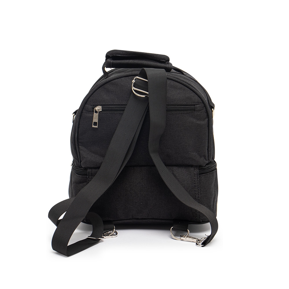 Descrição: Bolsa térmica dupla em nylon com dois compartimentos térmicos isolados, capacidade de 7 litros. Contém bolso traseiro com zíper, alça de mão e alça para as costas.
