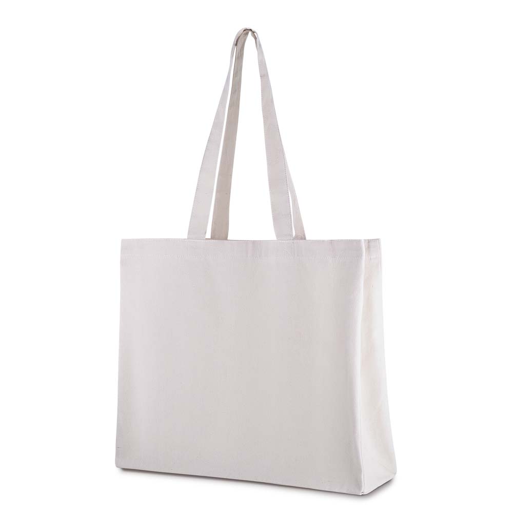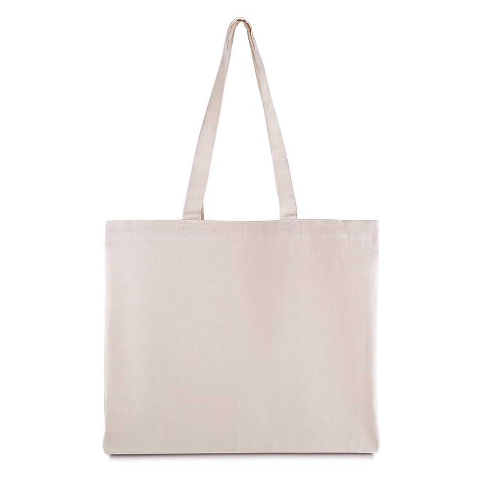 Sacola em Algodão Cru 200g/m² com base plana. Alça com altura de 31 cm, ideal para transporte.