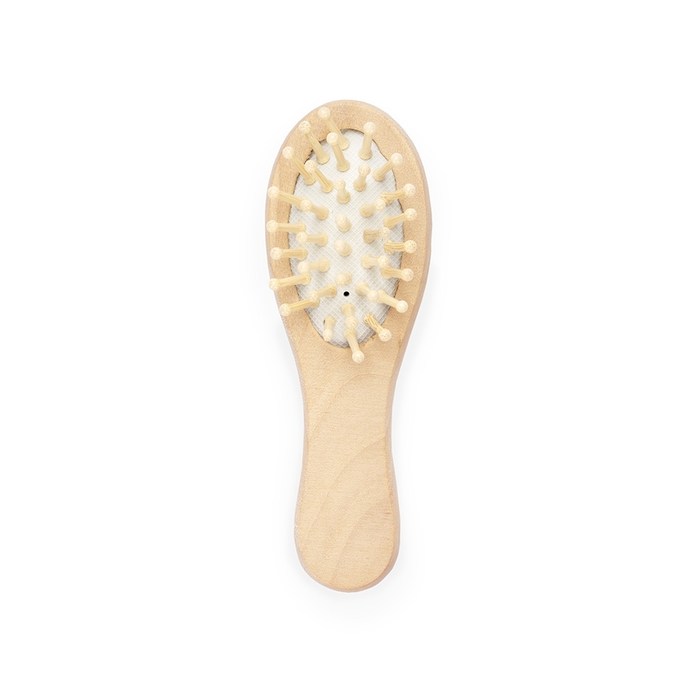Descrição: Kit banho com estilo natural envolvido em um cesto de madeira. Contém 4 itens: escova de madeira com cerdas macias, pedra-pomes, esponja redonda e uma esponja de nylon.