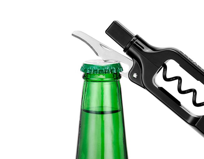 O saca rolhas PM100 possui um encaixe de alavanca inteligente, este conceituado acessório de vinho torna mais fácil a remoção da rolha. Este saca rolhas possui uma pequena lâmina que permite remover a proteção de alumínio ou plástico em segundos.