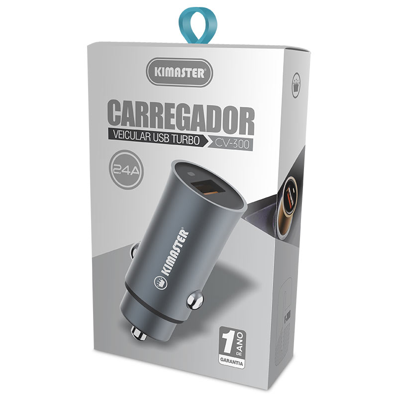 O carregador veicular Dual USB CV300 Kimaster converte o acendedor 12V do seu veículo em uma fonte de alimentação 5V, proporciona o carregamento turbo do aparelho com saida USB de 2.4A. Quick charge 3.0