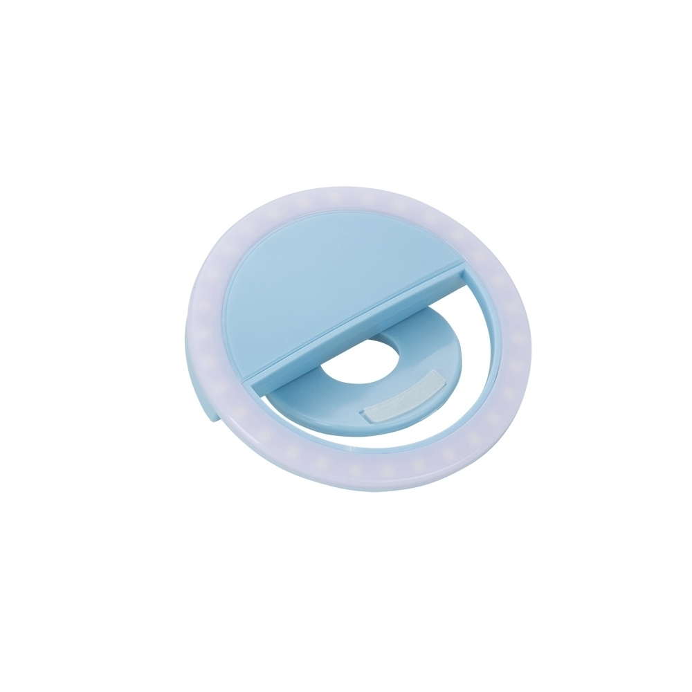 Anel de iluminação para celular, utilizado para fotos em formato selfie. “Ring light” plástico no formato “presilha” para encaixe, possui três estágios de iluminação acionados pelo botão superior. Acompanha cabo USB para carregamento.