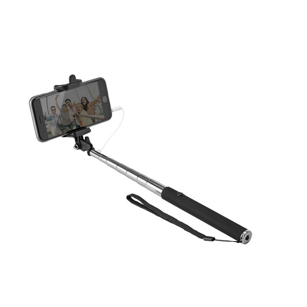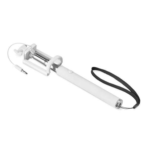 Bastão de selfie. PVC e aço inox. Com cabo de ligação jack 3,5 mm e botão obturador no cabo. Bastão extensível até 1040 mm. 45 x 215 x 30 mm