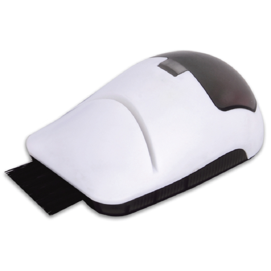 Formato de mini mouse, em material plástico,possui compartimento para clipe com ímã e tampa translucida colorida. Já incluso 10 clipes coloridos. Para acionar o limpador de teclado, basta deslizar o botão na parte inferior. As cerdas retráteis vão remover a poeira e sujeira dos teclados.