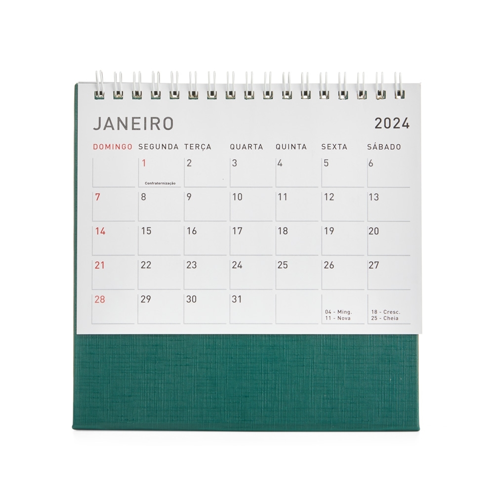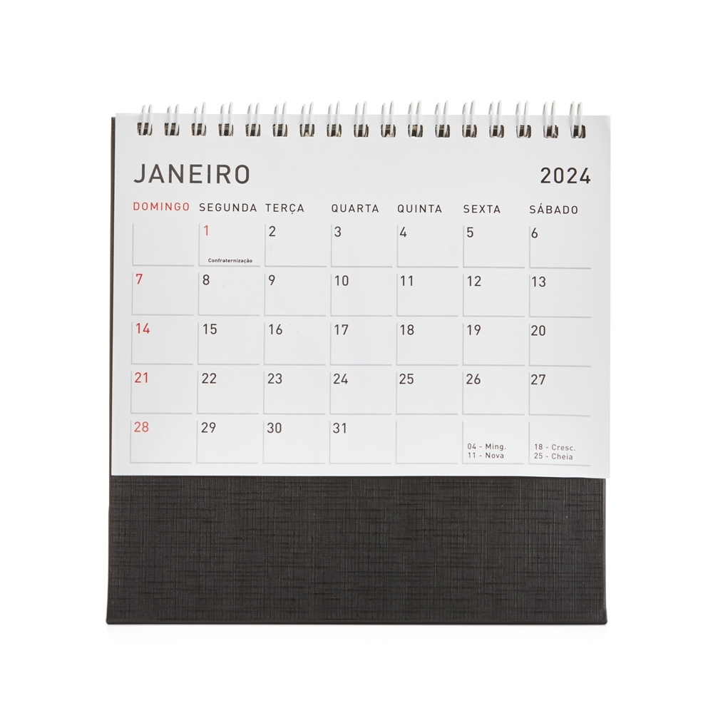 Descrição: Calendário de mesa 2024 em papel couche 115g, base percalux.