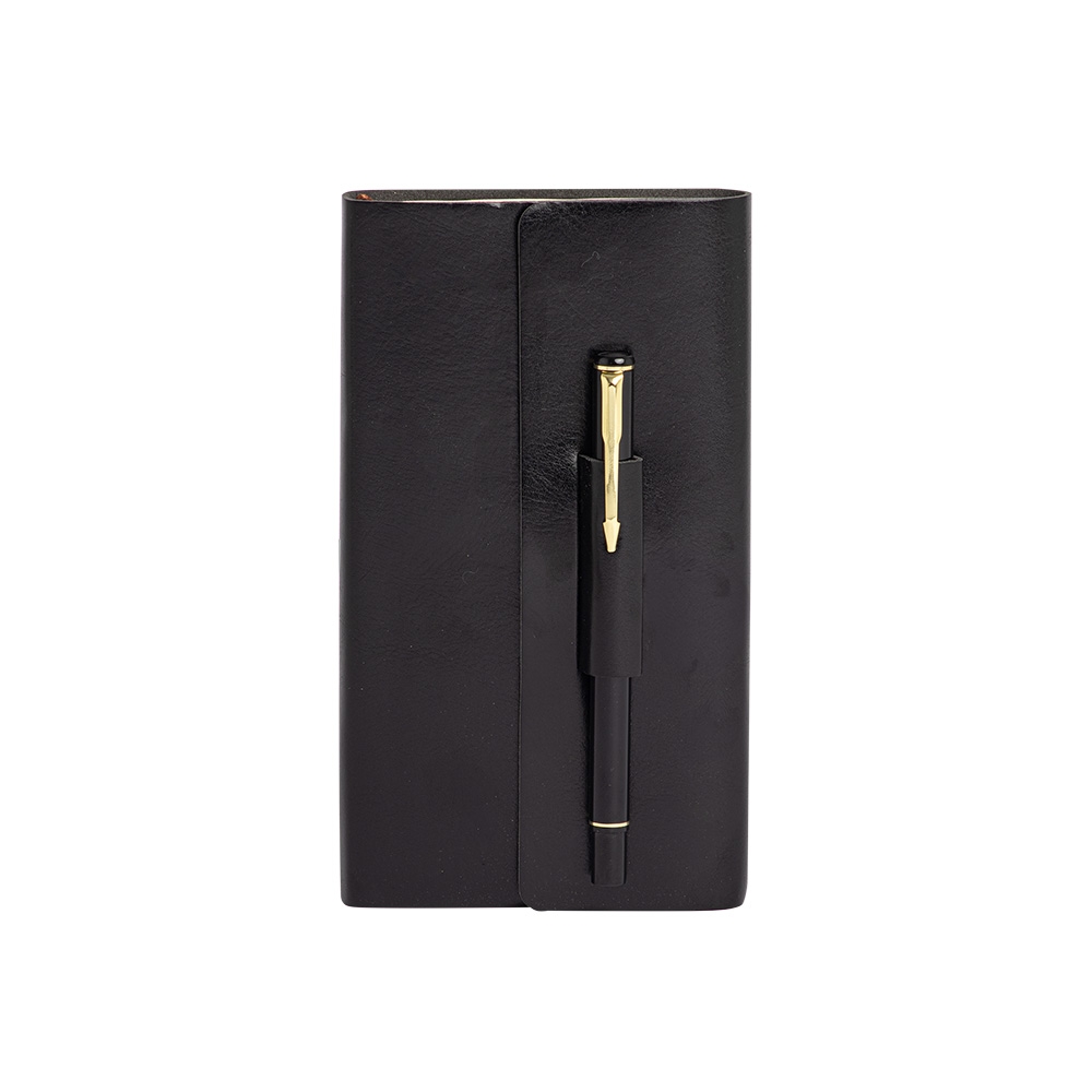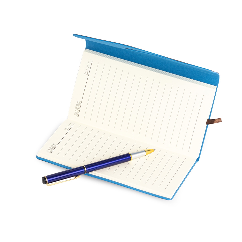 Descrição: Para quem busca registrar anotações de forma prática e acessível, nosso Kit para Anotações com Caneta é a escolha perfeita. Com aproximadamente 112 folhas amarelas pautadas e feito em couro sintético, o kit vem acompanhado de uma caneta metálica azul e um porta-caneta que também serve como fecho para o kit. Além disso, conta com um compartimento na parte de trás para cartões ou documentos. Prático e funcional na hora de organizar seus planejamentos!