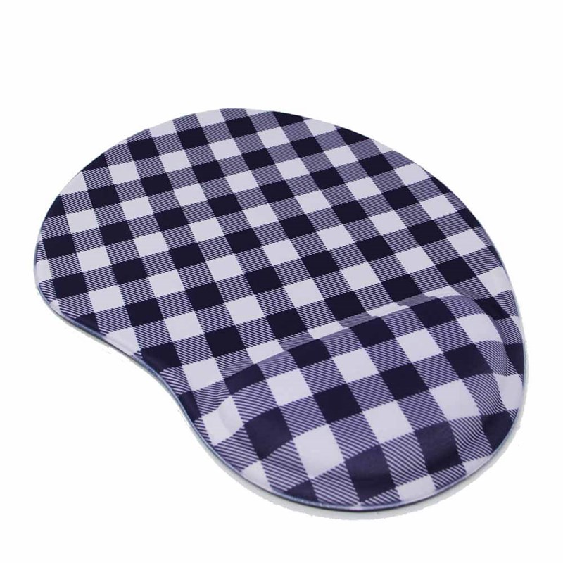 Este mouse pad personalizável possui descanso em formato ergonômico, base com espuma e revestimento em poliéster.