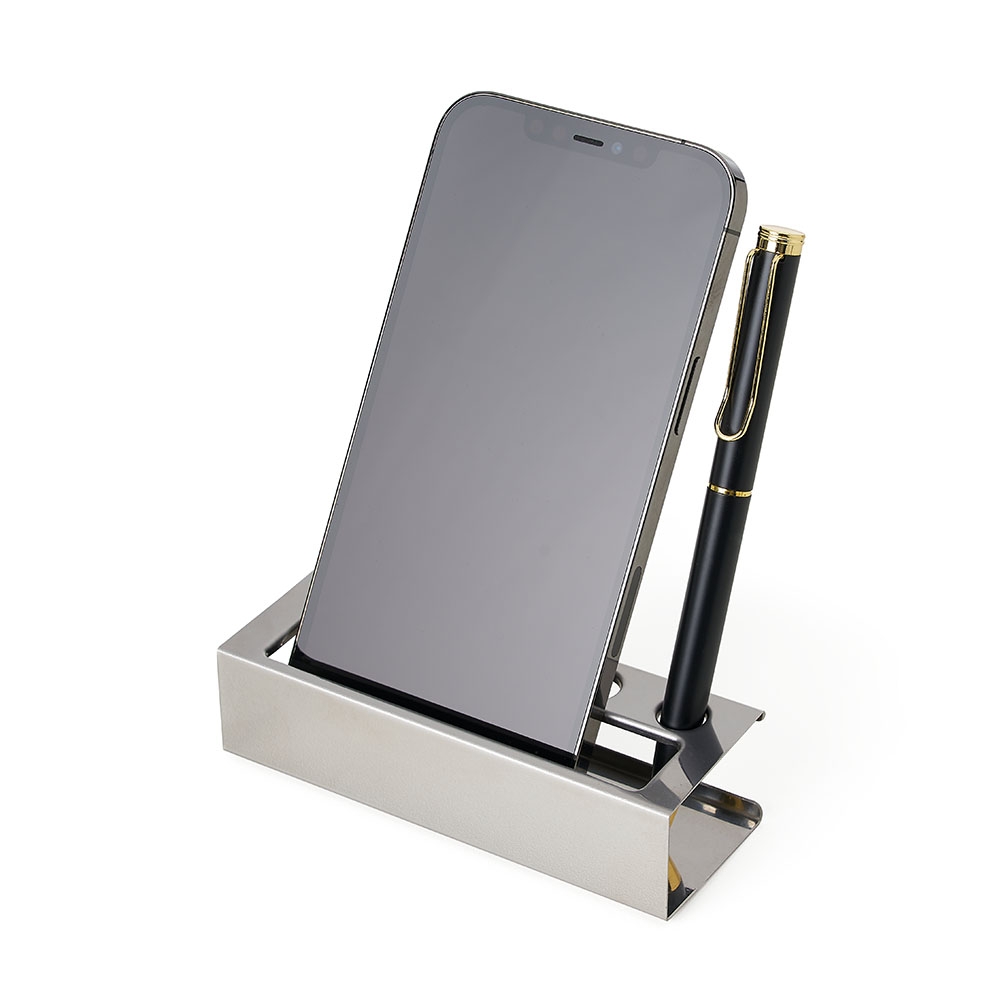 Porta Cartão e Caneta de Mesa em INOX Espelhado.