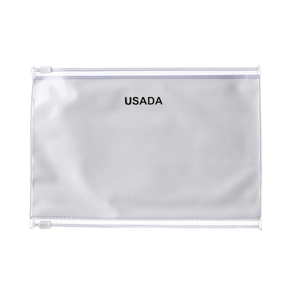 Pasta dupla para máscaras, produzida em PVC com fechamento ziplock. Os compartimentos são divididos para evitar o contato entre máscaras, contém área para armazenamento de máscaras esterilizadas e área oposta para armazenamento de máscaras usadas. Para acessar os compartimentos basta abrir o ziplock nas extremidades – superior ou inferior.
