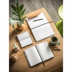Agenda B5 em pele reciclada (58%) com fecho magnético. Está organizada num plano semanal. Inclui suporte para esferográfica (incluída) e marcador em fita. Fornecida com bolsa de non-woven. 175 x 245 mm | Bolsa: 220 x 270 mm