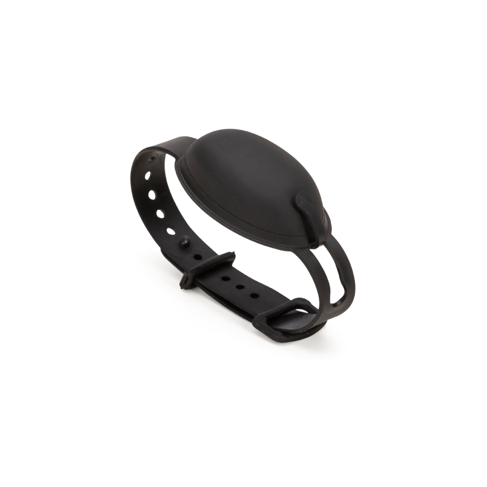 Pulseira termoplástica dispenser de álcool gel com para capacidade de 8ml. Possui trava de segurança, tampa traseira removível para inserção do álcool gel, pulseira com doze tamanhos de ajuste e um passante.