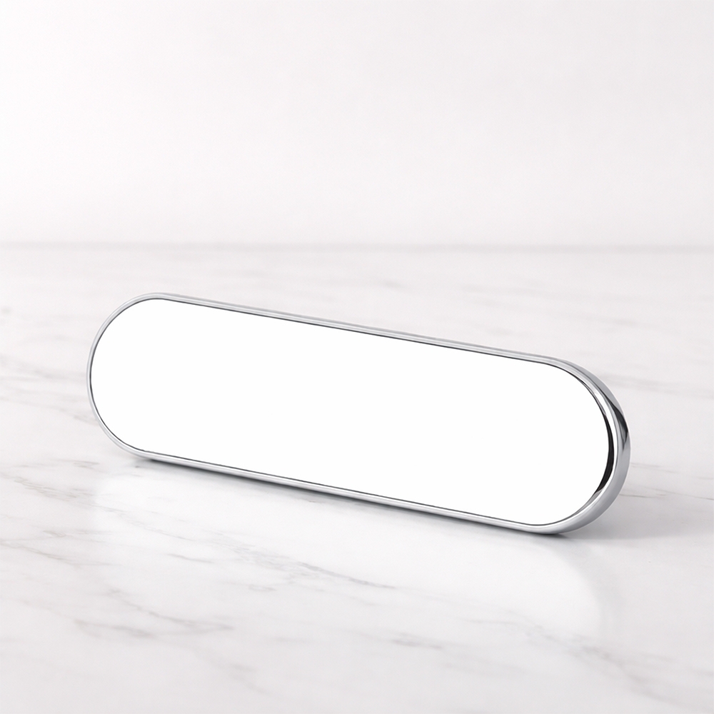 Descrição: Plaquinha metálica para personalização. Conta com duas hastes traseiras sem ponta para fixação.