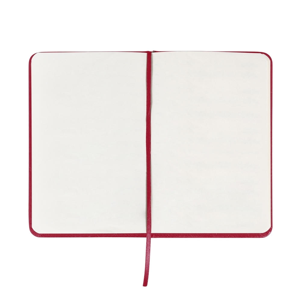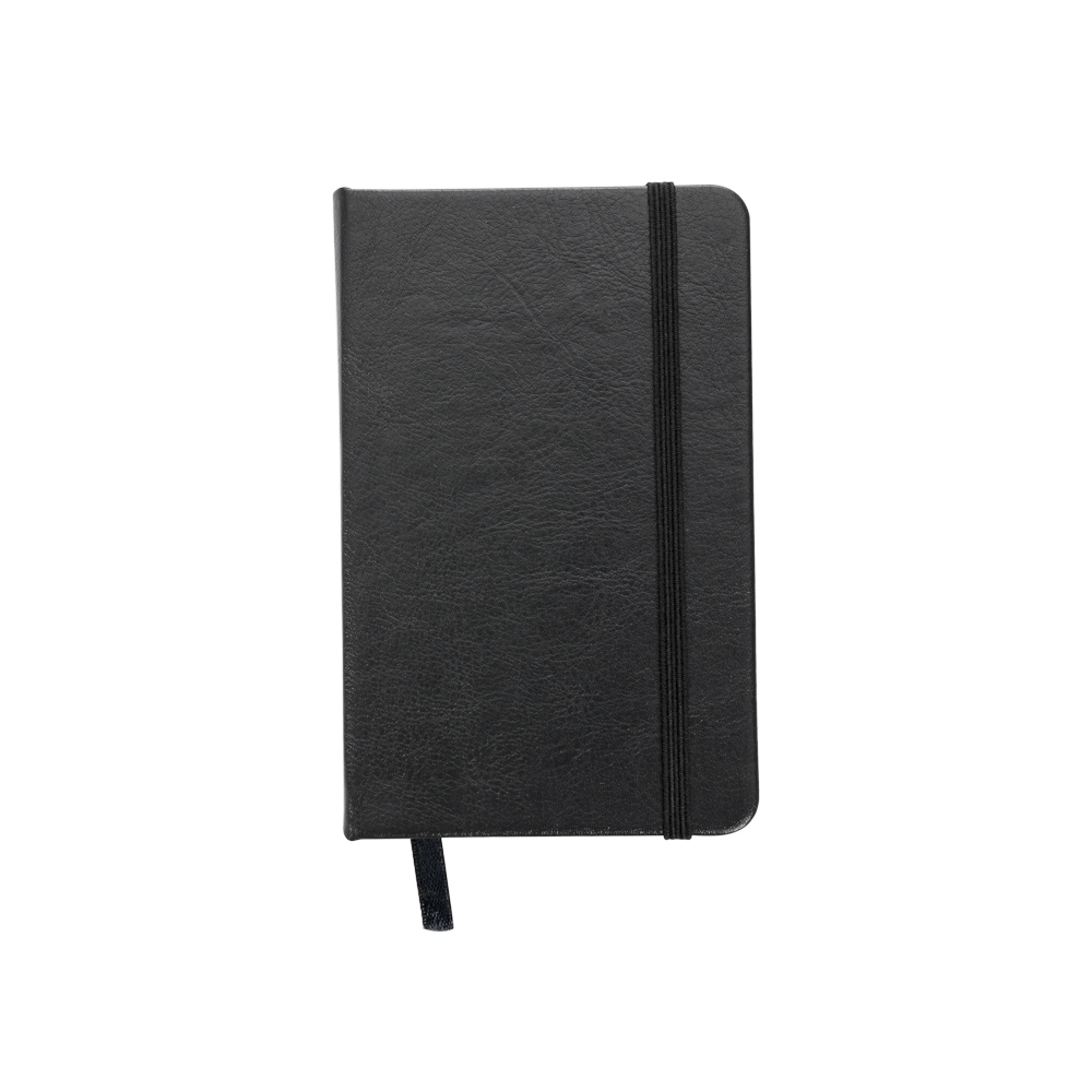 Descrição: Caderneta de material sintético (imitação de couro) com elástico para lacre e marcador de página em cetim, contém 80 folhas sem pauta.