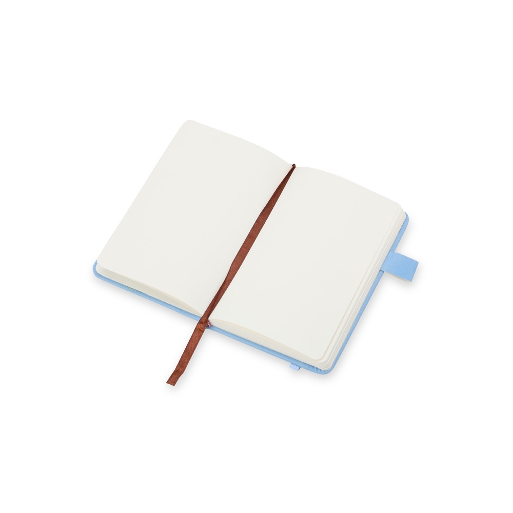 Descrição: Caderneta em PU com marcador de página em cetim e fita elástica para fechar. Contém aproximadamente 80 folhas amareladas sem pauta.