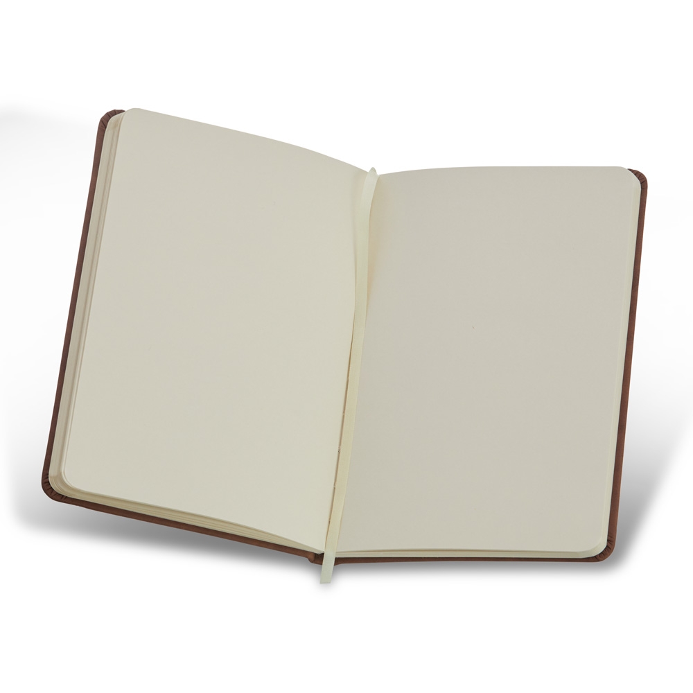 Descrição: Caderneta em material sintético (imitação de couro), possui marca página em cetim e elástico para lacre. Contém aproximadamente 80 folhas marfim sem pauta.