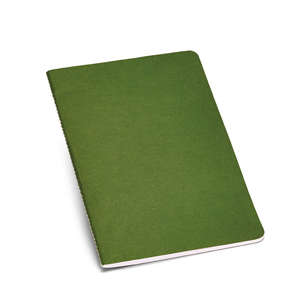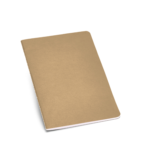 Caderno A5. Cartão reciclado. Com 40 folhas pautadas de papel reciclado. 140 x 210 mm