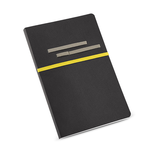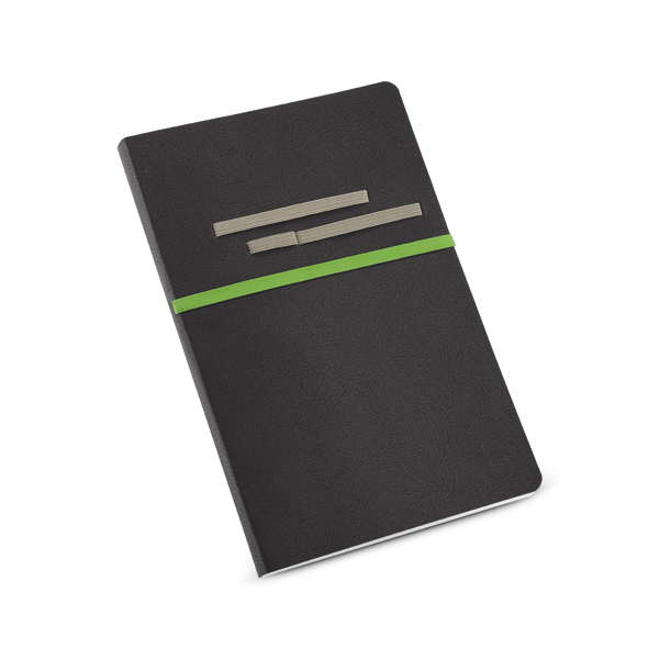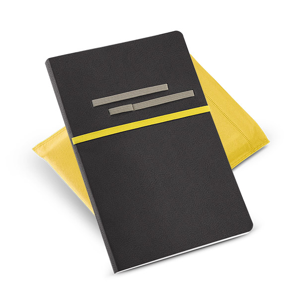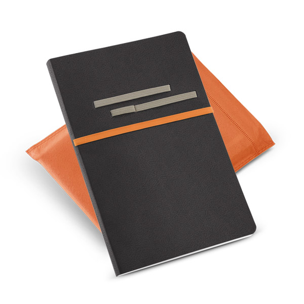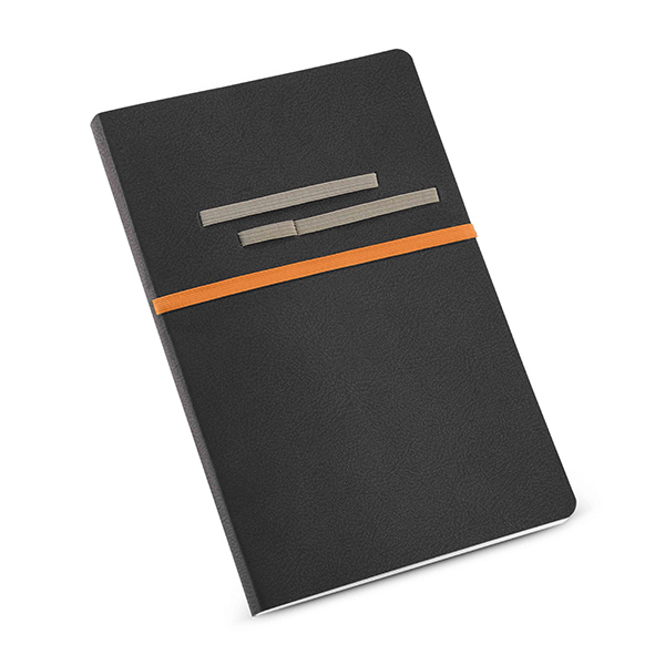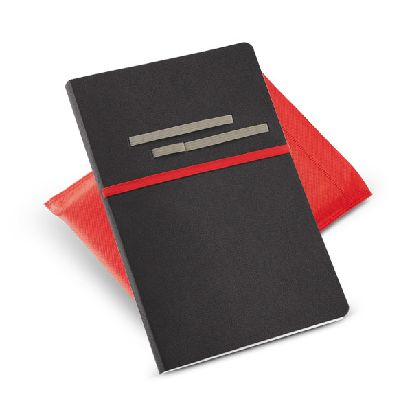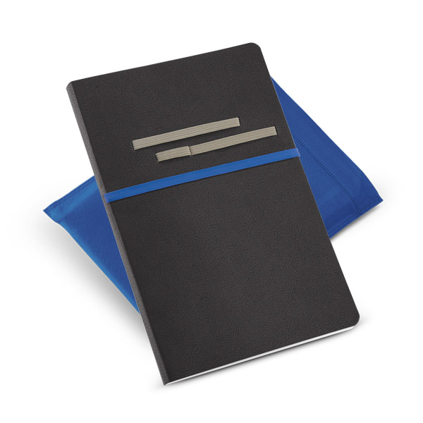 Caderno A5. C. sintético. Com 96 folhas não pautadas. Fornecido em embalagem de non-woven. Esferográfica não inclusa. 140 x 210 mm | Embalagem: 175 x 240 mm