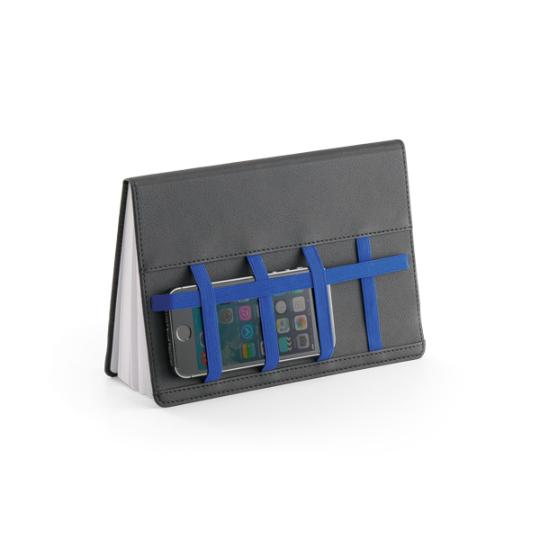 Caderno A5 capa dura. C. sintético. Com 80 folhas não pautadas. Fornecido em embalagem de non-woven. Esferográfica não inclusa. 150 x 210 mm | Embalagem: 175 x 240 mm