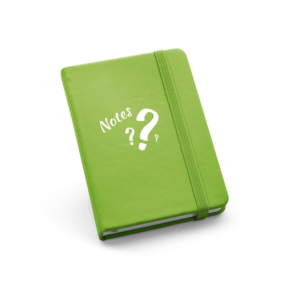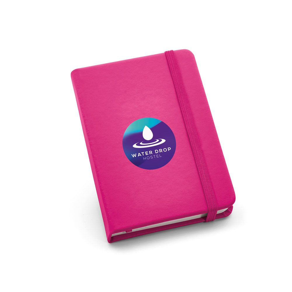 Caderno A6 capa dura. C. sintético. Com 80 folhas não pautadas. 90 x 140 mm