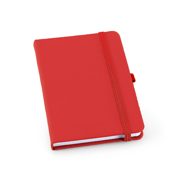Caderno B6 capa dura. C. sintético. Com porta esferográfica e 80 folhas não pautadas. 120 x 180 mm