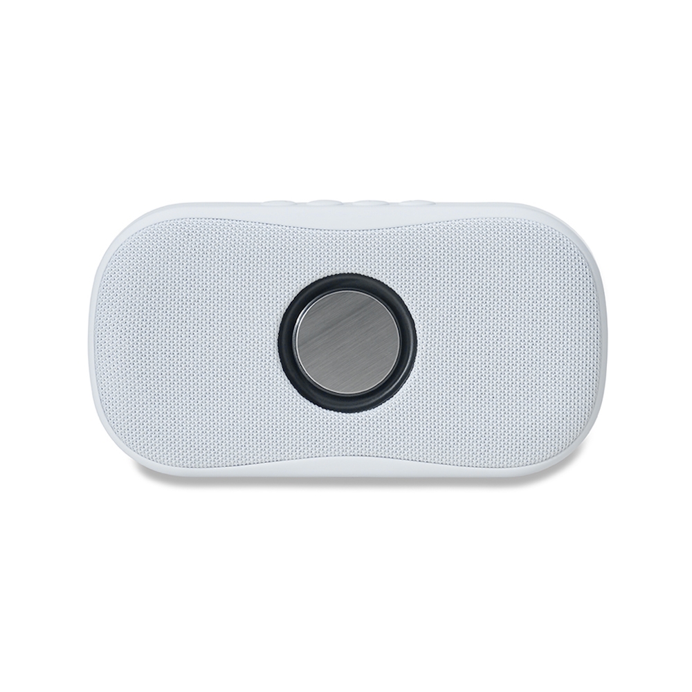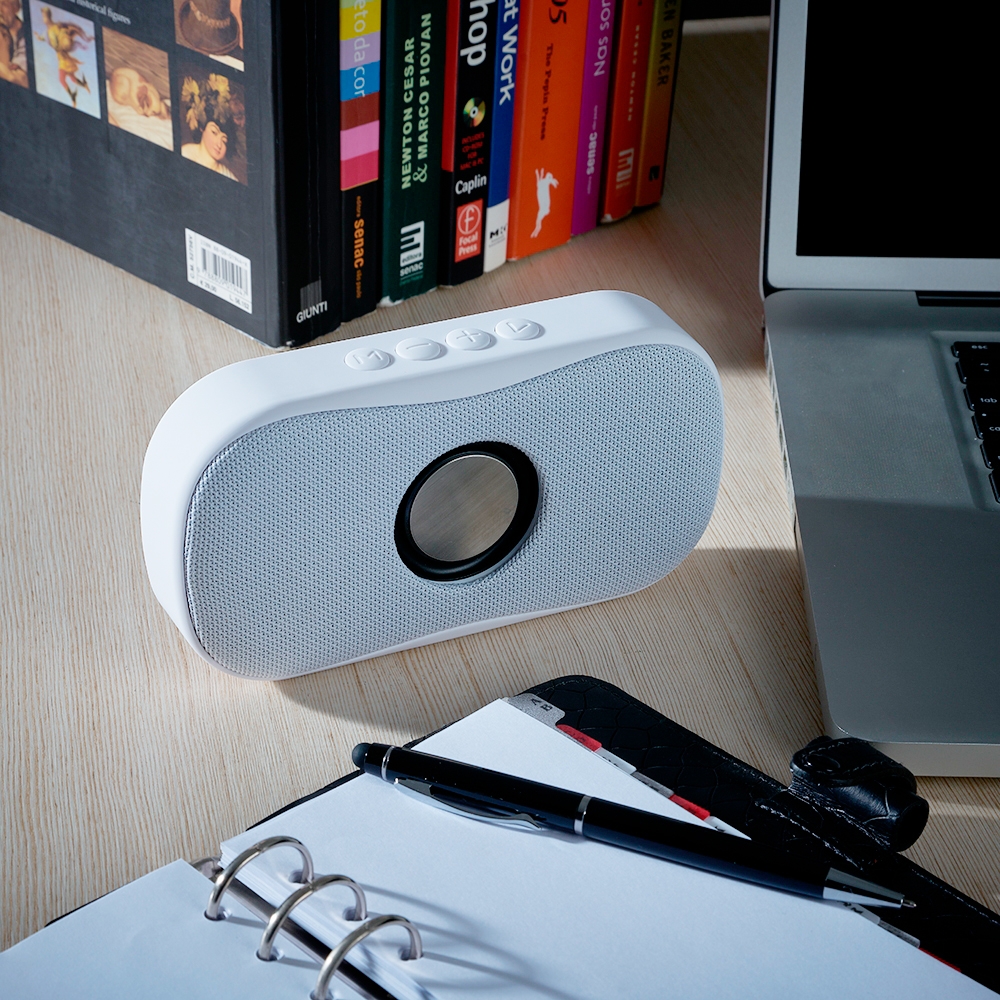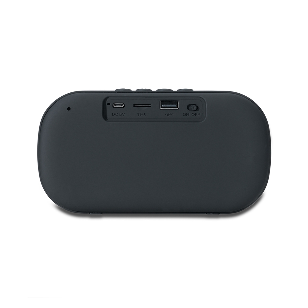 Produzida em plástico resistente, a caixa de som multimídia tem como destaque um falante frontal que vibra ao executar músicas com batidas graves. A caixa de som executa nos modos bluetooth, rádio FM e cartão microSD, para alternar entre os modos basta pressionar o botão M (modo); os botões – e + ao serem pressionar avançam e retrocedem as faixas, ao segurá-los poderá ser feita a alteração no volume; o botão play ▸ é utilizado para iniciar as faixas, no modo ligação ao ser pressionado duas vezes ele fará o redial do último número discado, em casos de ligações recebidas, pressionando o play a chamada será atendida e segurando-o a chamada será desligada. Enquanto a caixa de som estiver em funcionamento, ao segurar o botão play ela será desconectada do bluetooth. Especificações: bluetooth V 4.2; alcance de até 15 metros; voltagem DC 5V; dois falantes 4Ω3W; S/N ≥95db e frequência de resposta 280HZ-16KHZ. Possui entrada MicroUSB, entrada para cartão MicroSD, entrada USB e botão de funcionamento. Área frontal com revestimento em tecido e falante central com plaquinha metálica, parte inferior contém borrachas antideslizantes. Acompanha cabo USB.