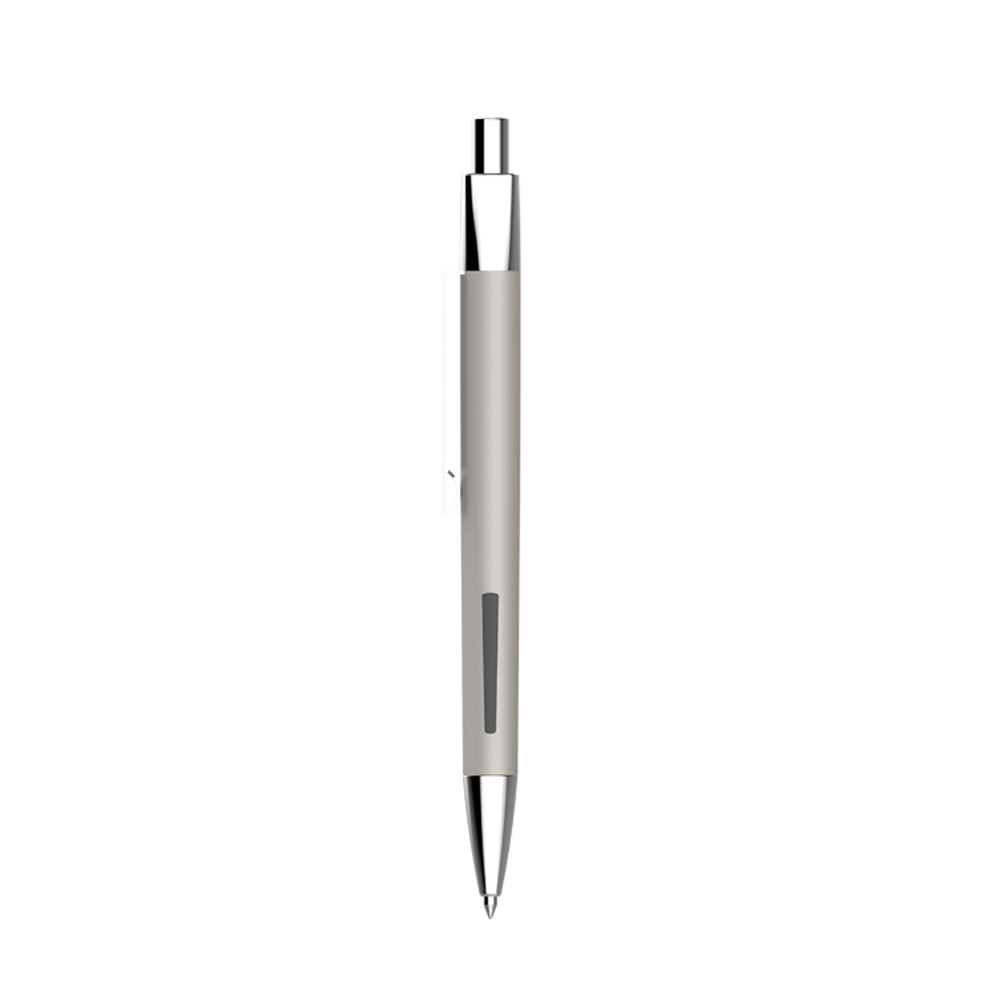 Caneta metal de pintura fosca, possui detalhe emborrachado na parte inferior. Clip metálico espelhado, aciona por clique. (14079)