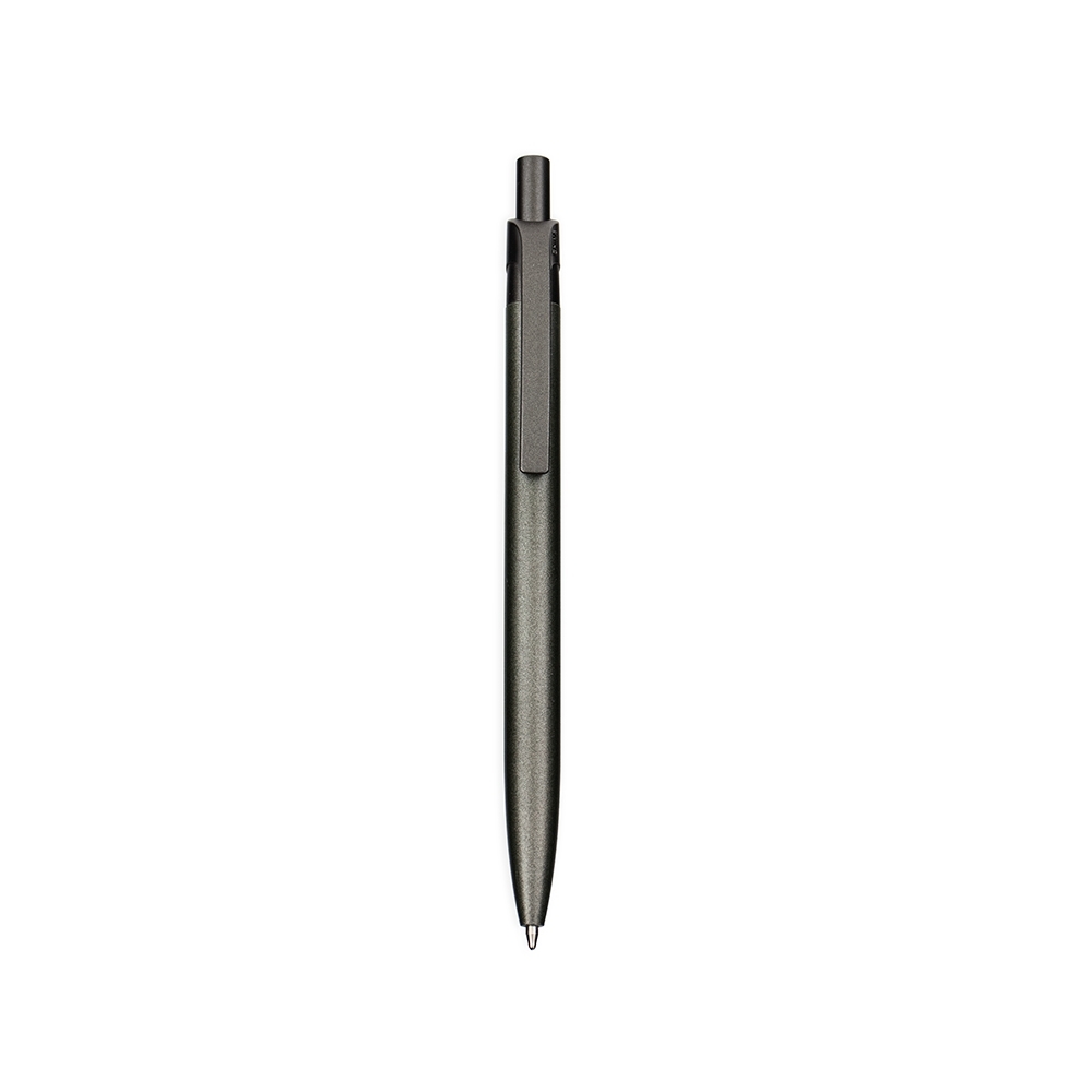 Descrição: Caneta metálica com acionamento por clique e clip em plástico. Possui carga esferográfica azul de 1,0mm.