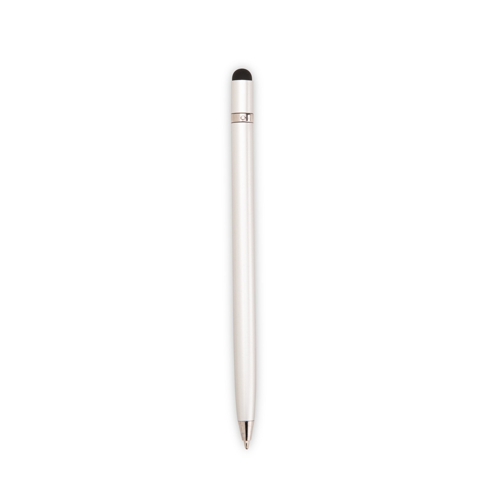 Descrição: Caneta metálica com detalhe emborrachado no topo, ideal para uso em dispositivos com telas sensíveis ao toque. Possui acionamento por rotação e carga esferográfica azul de 1,0mm.