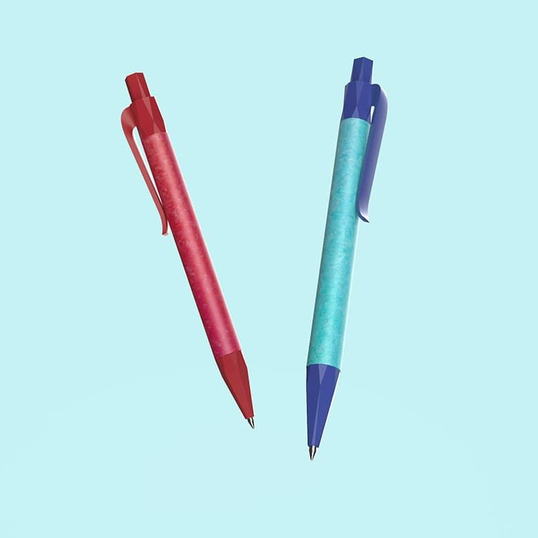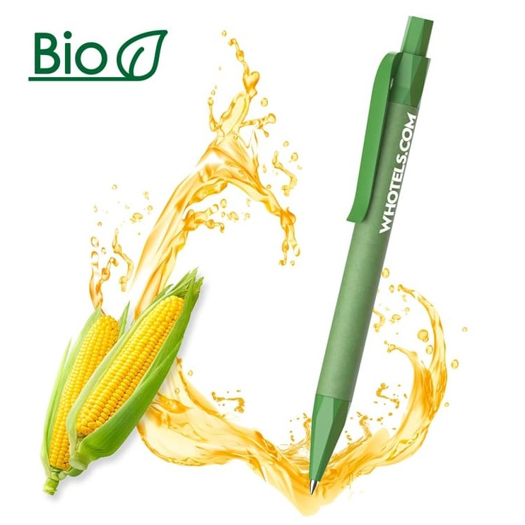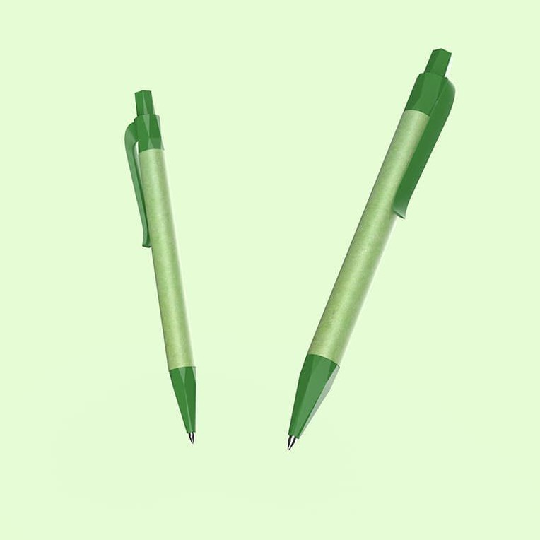 Caneta corpo em papel reciclado colorido com detalhes em plástico PLA biodegradável. (14673)