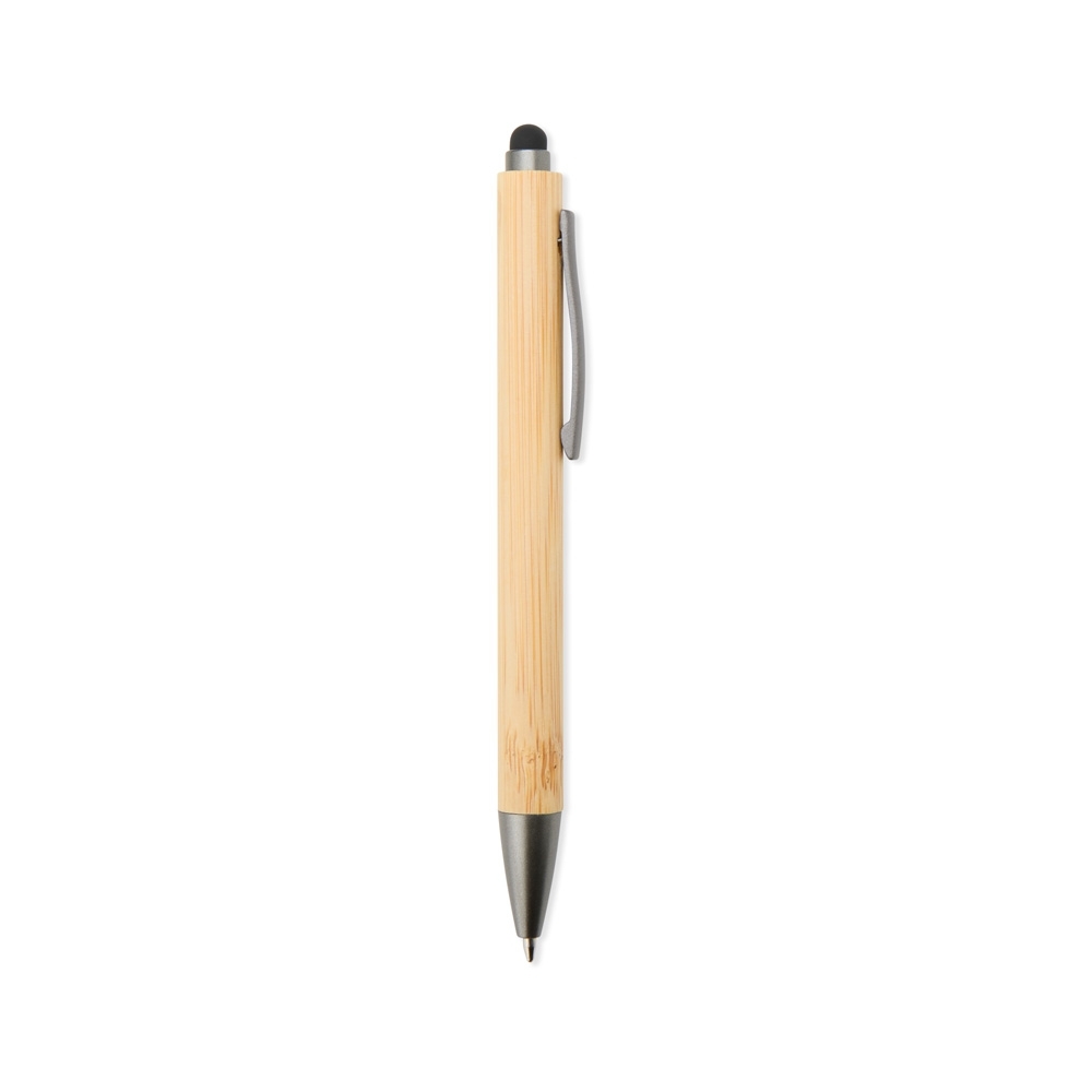 Descrição: Boa escrita começa com escolhas conscientes. A nossa caneta ecológica touch de bambu, é a opção ideal para dias intensos de anotações. Com detalhes plásticos e ponta touch, é possível utilizá-la em dispositivos eletrônicos sem tocar diretamente na tela, evitando manchas indesejadas. Essa caneta é a combinação perfeita de sustentabilidade e praticidade.