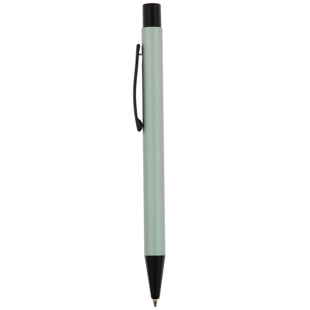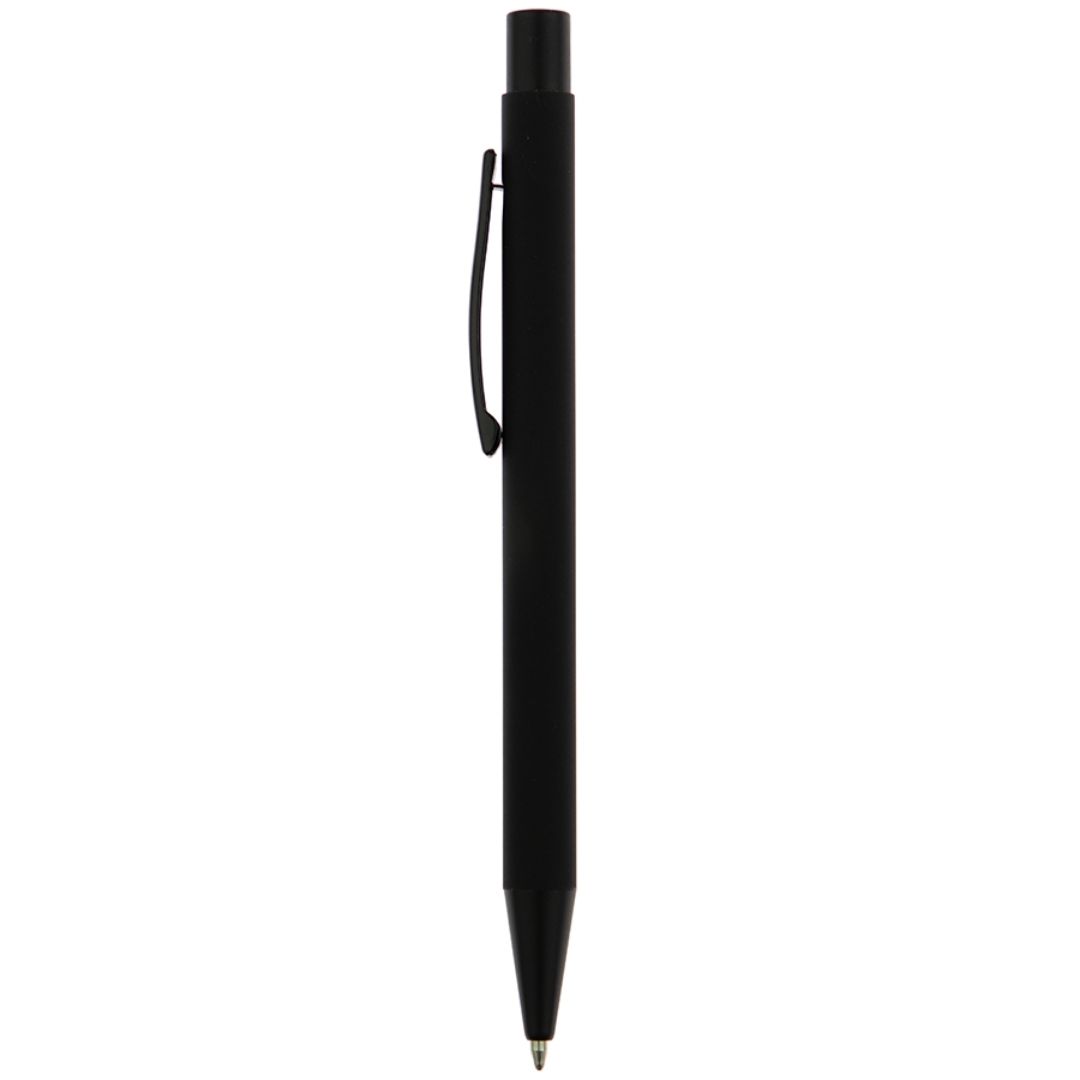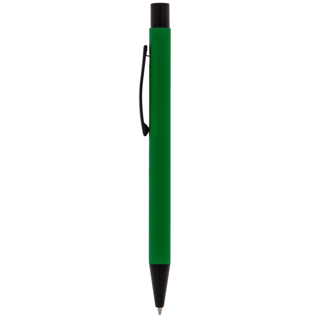 Caneta de metal com textura emborrachada e detalhes em preto. Acionamento por click. Tamanho 13,7 cm.