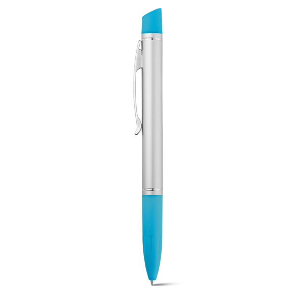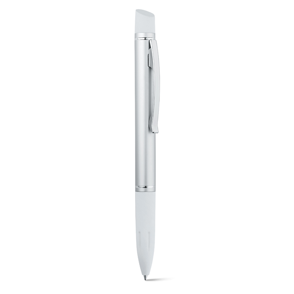 Caneta Gum esferográfica metálica com escrita em azul. Alumínio e ABS. Com grip. 1,5km de escrita. ø11 x 137 mm