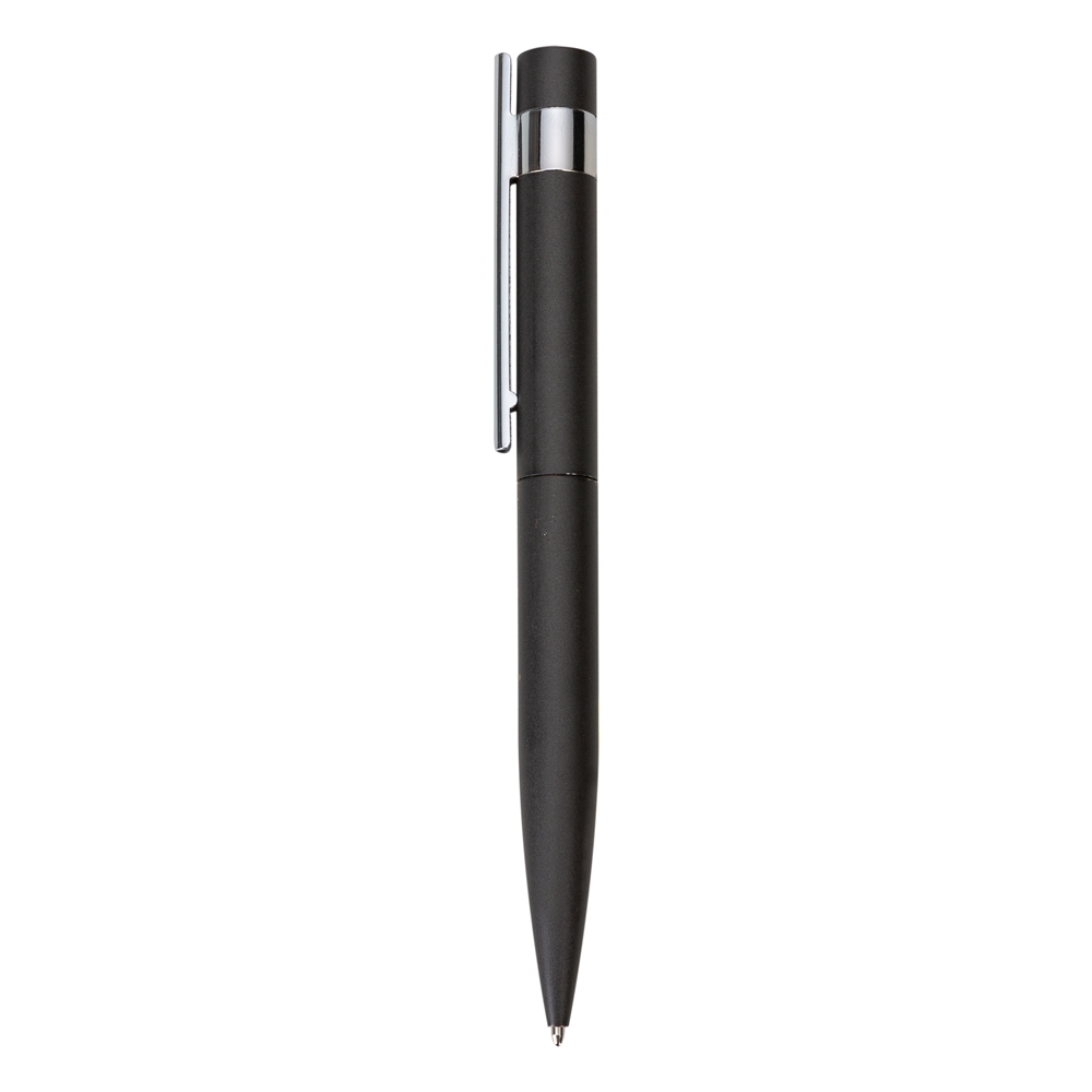 Caneta metal de pintura fosca com detalhes prata. Clip metálico prata, aciona por giro. (13260)