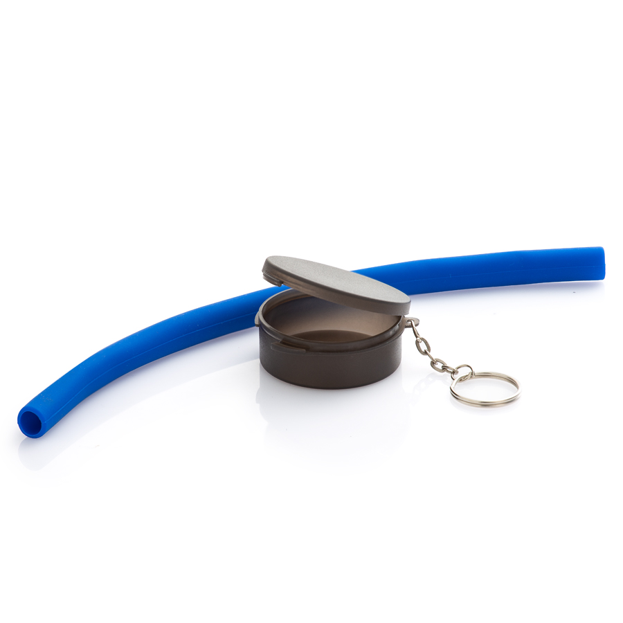 Canudo de silicone flexível, reutilizável. Canudo comprimento total de 25,5 cm. Caixinha 5,2 cm de diâmetro. (14531)