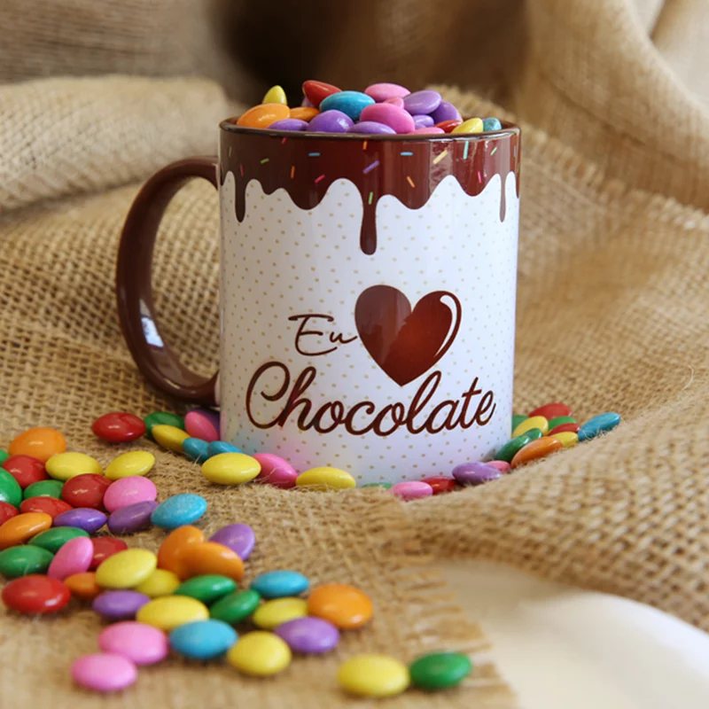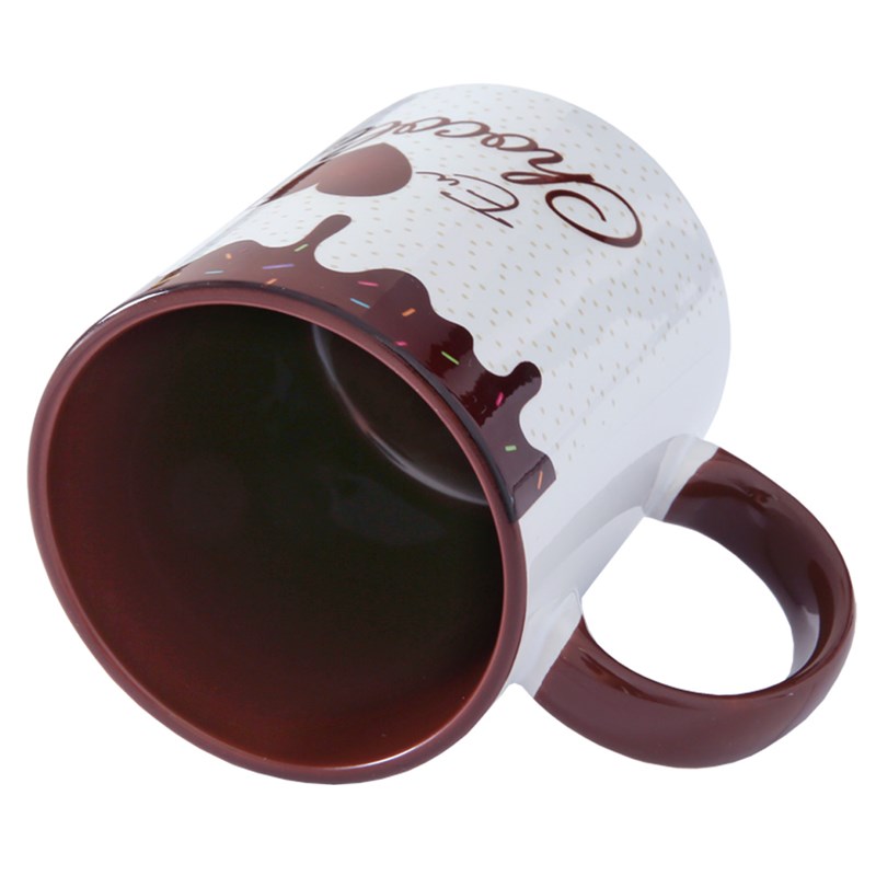 Caneca Para Sublimação Cerâmica Branca Com Alça, interior e Borda Marrom 325ml