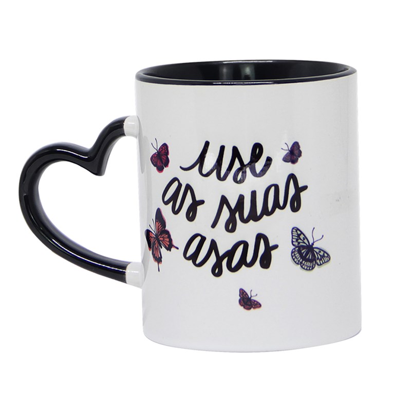 home / produtos / Canecas e Xícaras / Cerâmica / Caneca de Cerâmica Para Sublimação Branca Com Alça Coração E Interior Preta 325ml - C2SKU49531