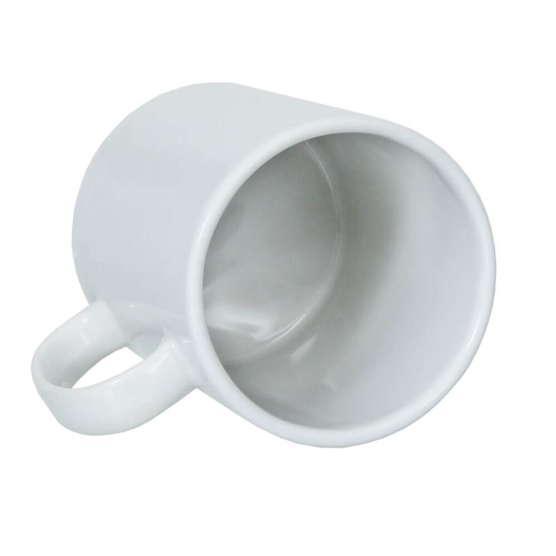 Características: A caneca é em cerâmica, tem capacidade para 310ml (menor que a tradicional) e tem a alça menor e mais fina.