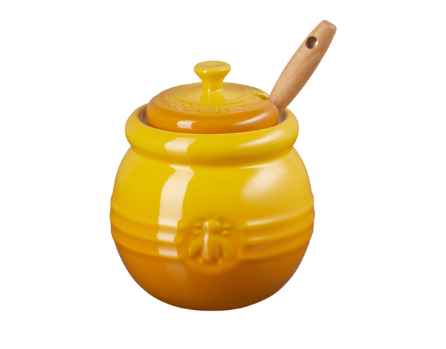 O Pote para Mel Le Creuset é perfeito para armazenar e servir mel com estilo. Projetado com uma tampa para a concha de mel de silicone que o acompanha, grande o suficiente para armazenar até 450ml de mel. Feitas com cerâmica premium, nosso pote de mel é feito para durar uma vida inteira e que pode ser apresentado como um item decorativo elegante e funcional para qualquer cozinha. Possui o tamanho ideal e pode ser lavado na lava-louças simplificando a limpeza, enquanto a concha de mel de silicone deve ser limpa apenas à mão.