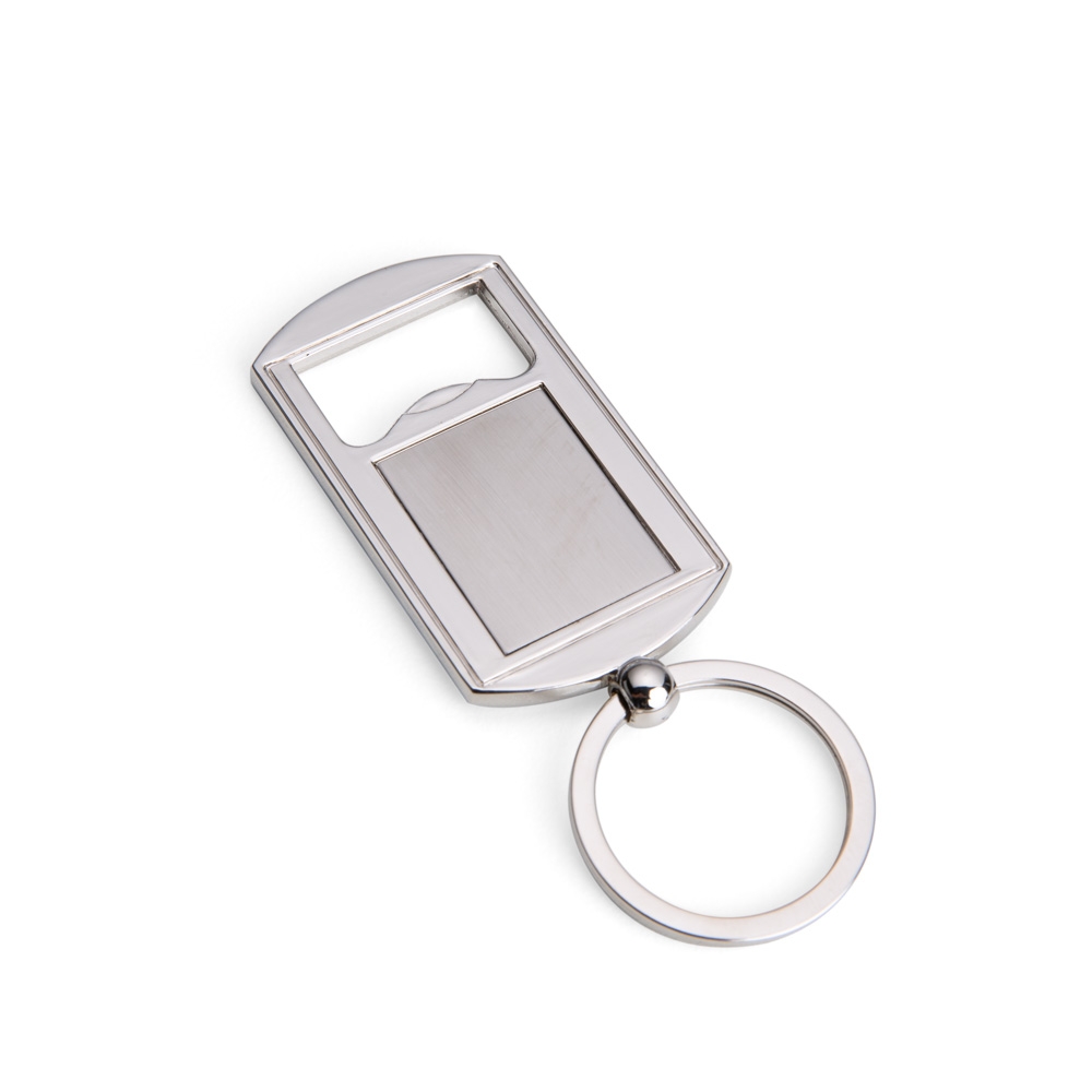 Chaveiro de metal abridor, parte central com uma chapa retangular para personalização e verso liso(sem chapa).