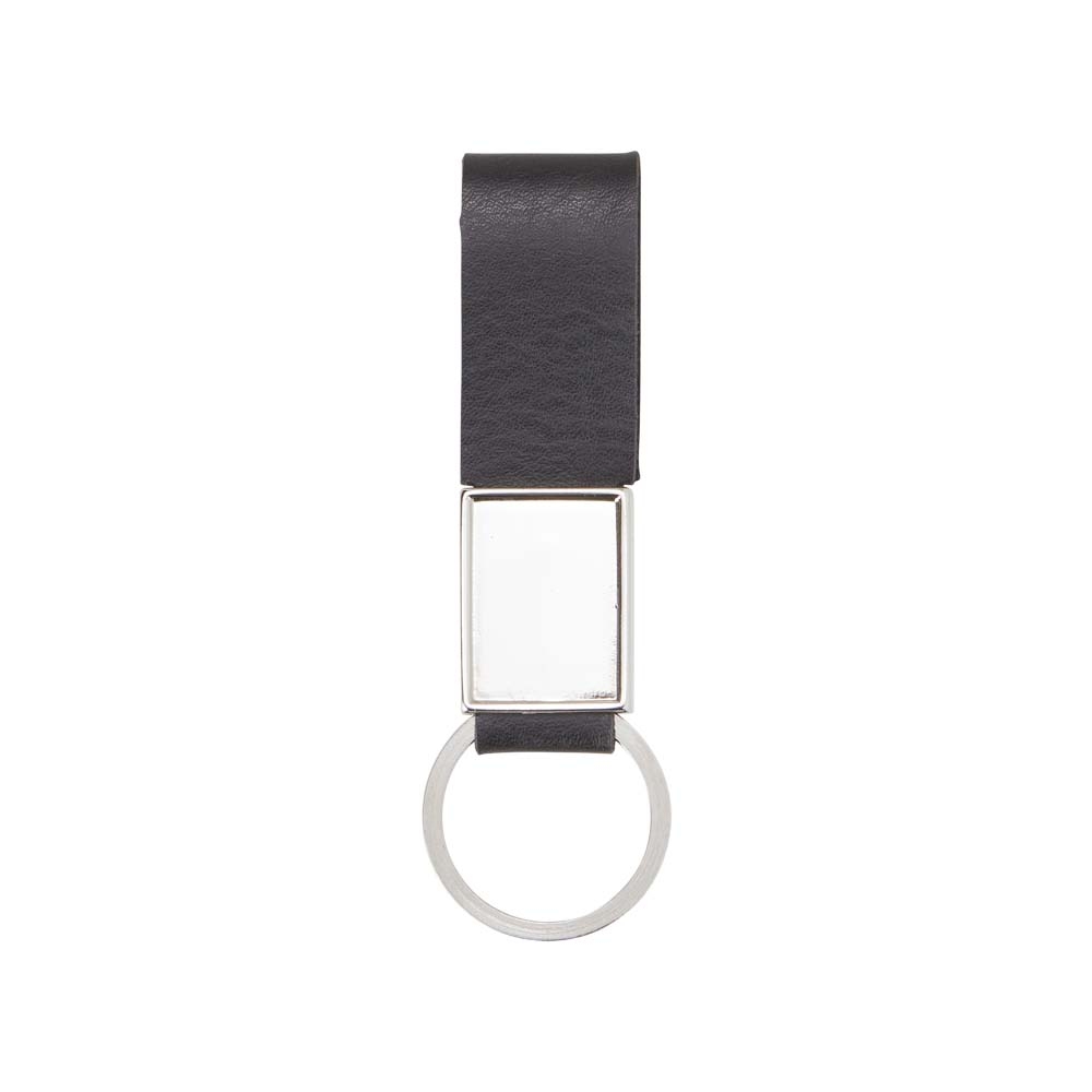 Descrição: Chaveiro de metal com alça em material sintetico (imitação de couro).