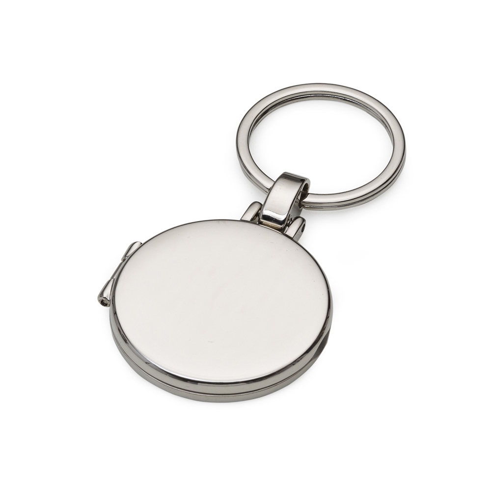 Chaveiro metal redondo porta foto, frente brilhante e verso fosco. É possível colocar foto em ambos lados, basta tirar encaixe “tampa” interno.