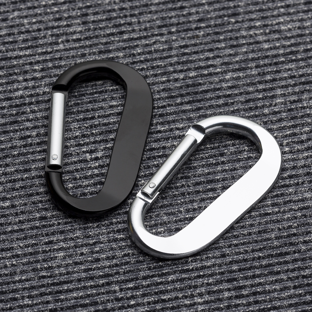 Mosquetão de alumínio sem trava, possui lateral reta ideal para personalização.